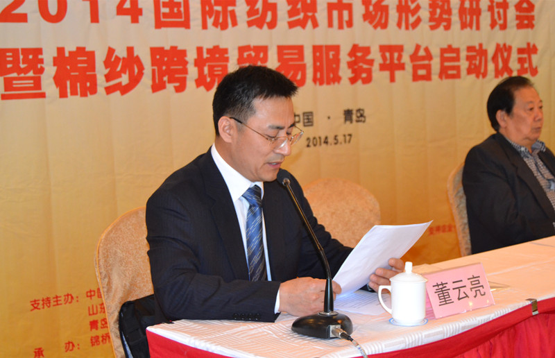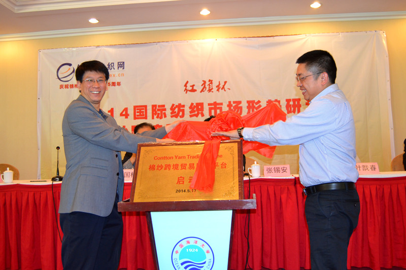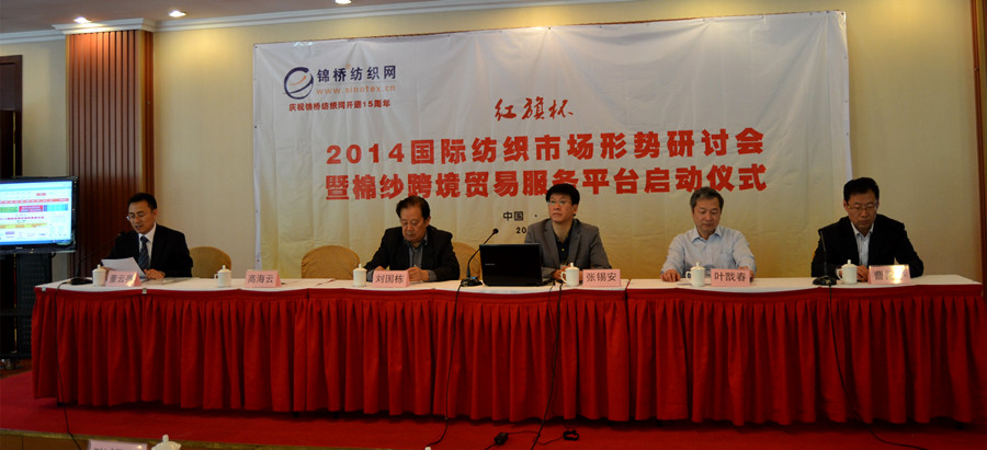 【5月17日青島訊】國內首家進口紗網(wǎng)上交易平臺---“棉紗跨境電商交易服務平臺”于2014年5月17日在青島開通。錦橋紡織網(wǎng)董云亮總經(jīng)理主持啟動儀式,中國紡織品進出口商會張錫安秘書長和錦橋紡織網(wǎng)張曉明董事長共同為啟動儀式揭牌,中國外企協(xié)會副會長原山東省外經(jīng)貿委副主任劉國棟同志、中國棉紡織工業(yè)協(xié)會副會長葉戩春同志,以及新華社、中國紡織報、大眾日報社等媒體參加了啟動儀式。