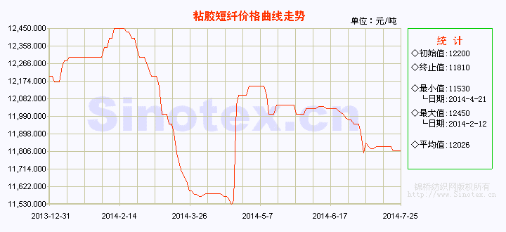 【錦橋紡織網(wǎng)專稿】7月份的第四周(7.21-7.25),粘膠短纖市場價格弱勢盤整,累計微幅下滑。粘膠短纖上游原料棉漿和溶解漿行情弱勢下滑,支撐不足;下游紗布淡季滯銷,以及環(huán)保治理導(dǎo)致開工率降低,整體需求偏弱。粘膠短纖市場成交重心較上周有百元松動,中端商談成交在11700-11900元/噸;高端廠家總體產(chǎn)銷情況良好,商談在在12200-12300元/噸,個別重點客戶在12100元/噸水平。下游維持剛需補貨。24日(周四)粘膠短纖行業(yè)會議后,中端執(zhí)行意向上調(diào)至12000元/噸位置,下游接盤意向偏弱,對新價格接受度較低。目前,粘膠短纖廠家?guī)齑孑^低,開工率有上升趨勢。不少粘膠短纖廠家8月有限產(chǎn)計劃,加之行業(yè)會議精神支撐,預(yù)計后期價格有所提振,短期內(nèi)粘膠短纖價格或窄幅整理為主。7月25日,粘膠短纖價位運行在11810元/噸(比當(dāng)日國內(nèi)3128B級棉花現(xiàn)貨價格低5363元/噸,價差縮?。?,本周價格累計微幅下降20元/噸,降幅0.17%。