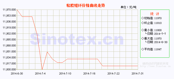 【錦橋紡織網(wǎng)專稿】7月份,粘膠短纖行情先陰跌后盤整,價格累計較上月擴幅續(xù)滑。上旬,粘膠短纖上游原料棉漿、溶解漿行情穩(wěn)中顯弱,但下游紡織淡季,人棉紗布市場量價不斷下滑,需求不振,導致粘膠短纖價格的陰跌狀態(tài)。1-10日,粘膠短纖價格累計下滑150元/噸至11820元/噸,降幅1.25%。中下旬,在10日和24日兩次行業(yè)會議之后,粘膠短纖陰跌之勢有所緩解,價格穩(wěn)中盤整。14日,粘膠短纖價格微幅上漲10元/噸,23日價格又微幅下滑20元/噸。7月全月統(tǒng)計:粘膠短纖價格累計下降160元/噸,降幅1.34%,月末運行在11810元/噸,價格低于中國棉花價格指數(shù)CCindex328(現(xiàn)貨價格)5328元/噸,價差比上月微幅縮小。