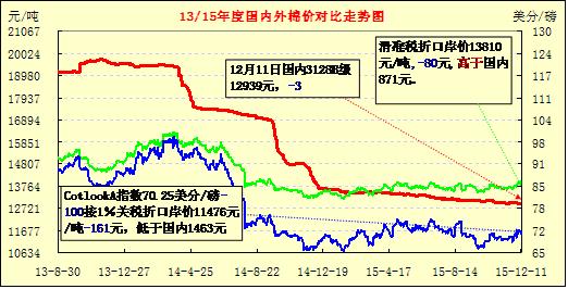 【錦橋紡織網(wǎng)專稿】2015年12月上旬,內(nèi)外期棉走勢依然相對獨立,美棉反彈后有所回落,整體表現(xiàn)偏強;鄭棉延續(xù)下跌走勢,明顯弱于外盤,且與現(xiàn)貨大幅背離。經(jīng)過前一輪補庫,皮棉購銷放緩;棉花減產(chǎn)預期及高等級資源搶手,支撐國內(nèi)棉花現(xiàn)貨價格相對穩(wěn)定。棉紗庫存壓力偏重,價格繼續(xù)小幅下滑;臨近年底,紡企資金壓力較大,經(jīng)營難見好轉(zhuǎn),限產(chǎn)、停產(chǎn)企業(yè)數(shù)量仍在增加。