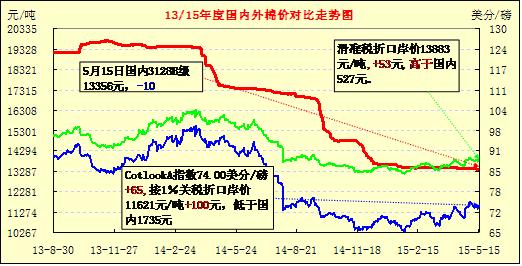 【錦橋紡織網(wǎng)專稿】2015年5月上半月,ICE期棉高位震蕩,維持反彈趨勢(shì)不改。國(guó)內(nèi)棉市整體較弱,鄭棉期價(jià)反彈乏力,受阻回落;國(guó)內(nèi)棉花現(xiàn)貨市場(chǎng)回暖勢(shì)頭遇阻,價(jià)格跟跌鄭棉,但價(jià)格倒掛嚴(yán)重,下跌空間有限。下游市場(chǎng)淡季前兆明顯,棉紗市場(chǎng)整體訂單量有減少趨勢(shì),部分品種價(jià)格繼續(xù)下滑。