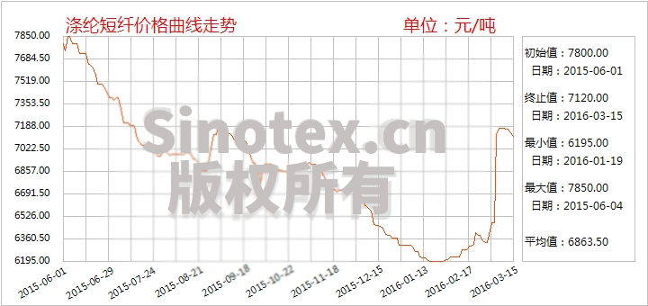 2016年3月中石化滌短預(yù)收款報(bào)價(jià)上調(diào):1.4D半光滌短報(bào)7100元/噸;1.2D有光滌短報(bào)7650元/噸。