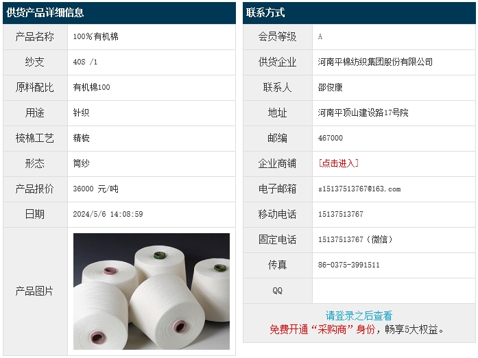 河南平棉紡織有機(jī)棉紗報(bào)價(jià)