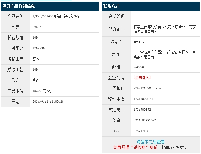 石家莊仕邦紡織(原晉州元亨紡織)賽絡(luò)紡滌粘包芯紗報(bào)價(jià)