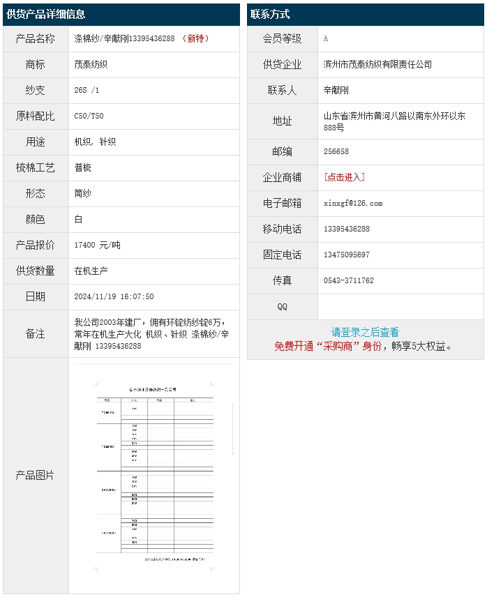 11月19日,濱州茂泰紡織有限責(zé)任公司滌棉紗C50/T50 26S,報價為17400元/噸,實際成交價以協(xié)商為準。[點擊查看詳情]