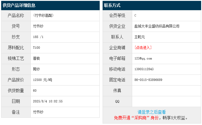 如果您還沒有 錦橋紡織網(wǎng) 賬戶,您可在此 免費注冊 。
