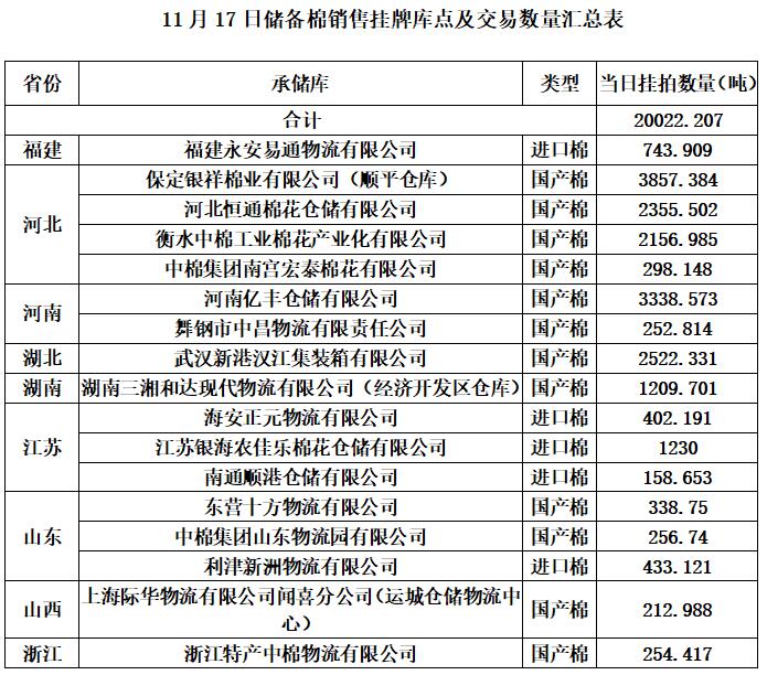 2、11月17日上市銷售儲(chǔ)備棉數(shù)據(jù)明細(xì)表(進(jìn)口棉)