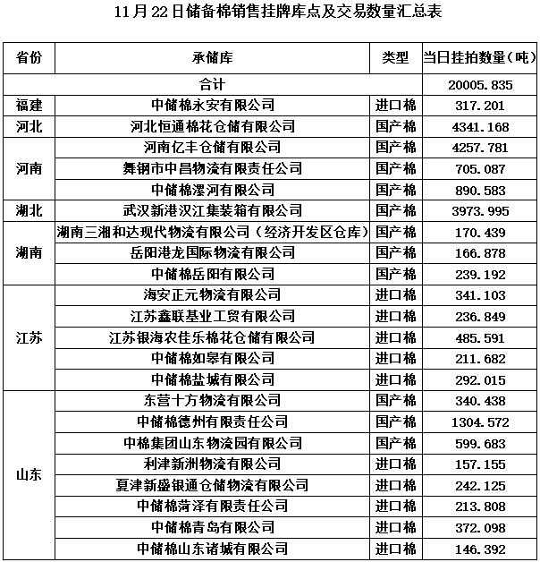 3、11月22日上市銷售儲(chǔ)備棉數(shù)據(jù)明細(xì)表(進(jìn)口棉)