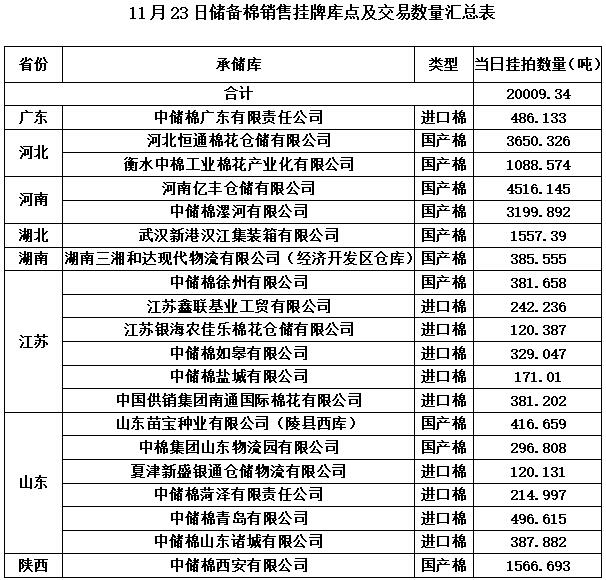 111月23日上市銷售儲備棉數(shù)據(jù)明細表(批檢)