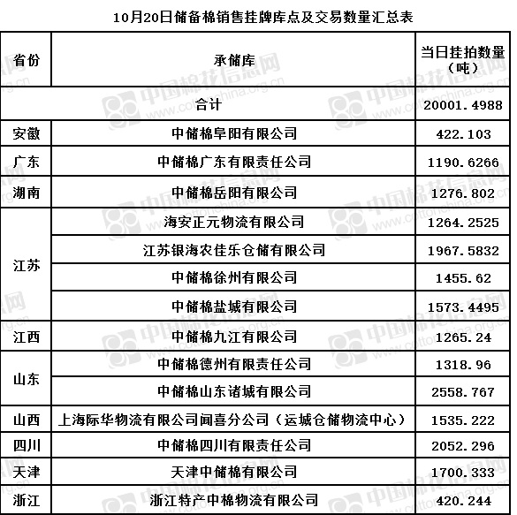 附件:1、10月20日上市銷(xiāo)售儲(chǔ)備棉數(shù)據(jù)明細(xì)表(進(jìn)口棉)