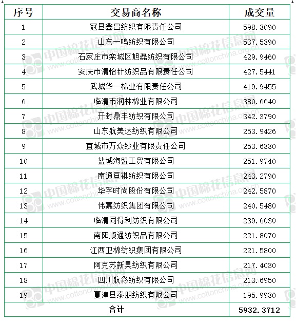 新疆棉成交均價16721元/噸,較前一日上漲97元/噸,新疆棉折3128價格17231元/噸,較前一日下跌2元/噸,新疆棉平均加價幅度3元/噸。