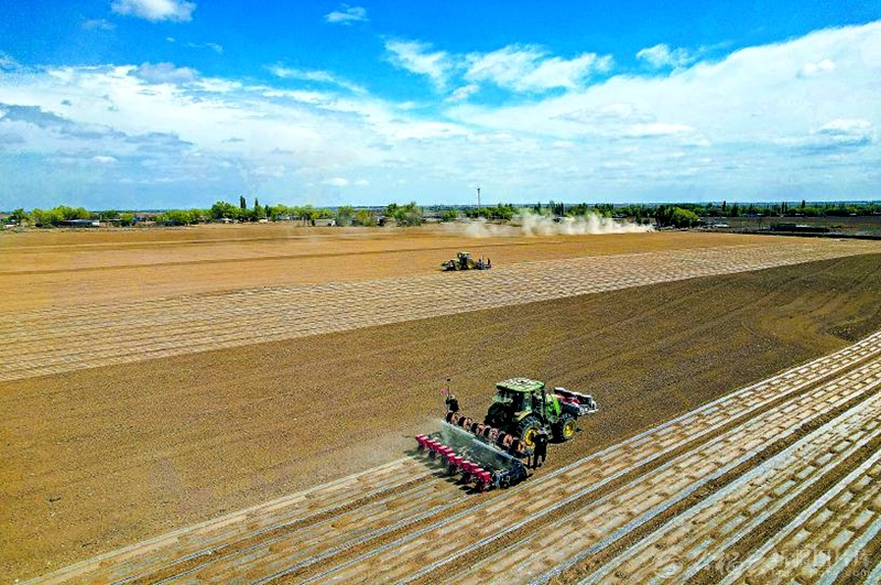 4月17日,無人駕駛北斗導(dǎo)航播種機(jī)在烏蘇市西湖鎮(zhèn)一家地村的棉田里作業(yè)。連日來,烏蘇市百萬畝棉田進(jìn)入集中播種期,當(dāng)?shù)匾劳芯坎シN、干播濕出、智慧灌溉等現(xiàn)代農(nóng)業(yè)技術(shù),推動(dòng)棉花生產(chǎn)向智能化、節(jié)水化、高效化轉(zhuǎn)型。