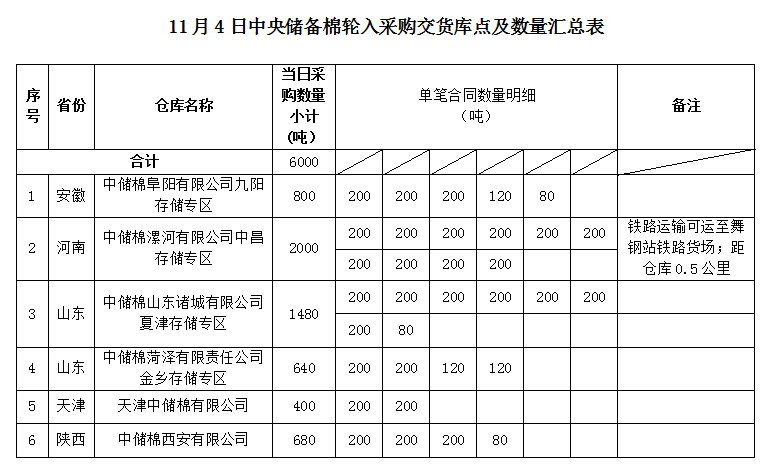 附件:11月4日中央儲備棉輪入采購掛牌明細(xì)表