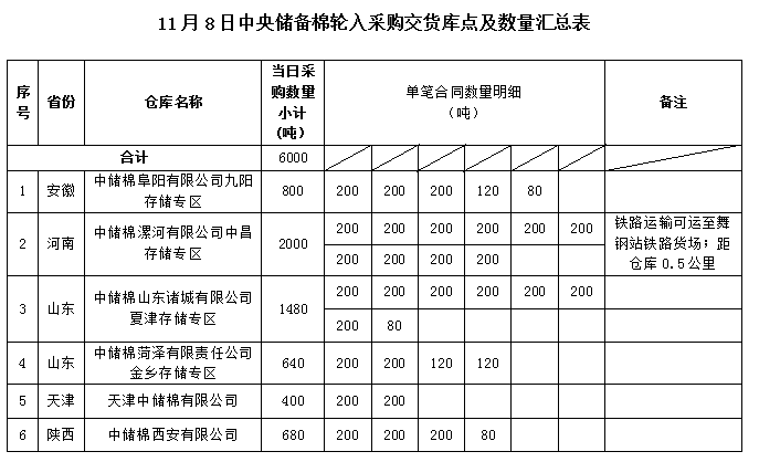 中國儲備棉管理有限公司定于2022年11月8日采購棉花6000噸(公定重量)。具體庫點及數(shù)量如下: