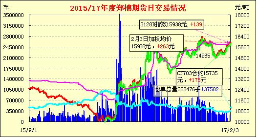 2月3日,春節(jié)期僮紐約棉花期貨上漲,今日鄭棉CF1705合約高開(kāi),早盤(pán)寬幅震蕩并伴隨大量換后,午手增倉(cāng)回穩(wěn),日線形成1/2下影線的陽(yáng)線。日內(nèi)成交量放大,持倉(cāng)量增加?;久媲闆r:2017年春節(jié)過(guò)后開(kāi)工第一天,期貨行情繼續(xù)提漲,受其影響河北市場(chǎng)棉花現(xiàn)貨行情均大幅度上調(diào),但由于需求較淡,而價(jià)格方面又存在分歧,市場(chǎng)暫無(wú)成交。當(dāng)前多數(shù)業(yè)內(nèi)人士預(yù)計(jì)在拋儲(chǔ)前期棉花行情將保持穩(wěn)定上升行情,一是籽棉收購(gòu)工作基本全面結(jié)束,棉花現(xiàn)貨庫(kù)存無(wú)大的上升;二是距離國(guó)家拋儲(chǔ)還有近一個(gè)月時(shí)間,空檔期預(yù)計(jì)行情穩(wěn)定;三是即便是國(guó)儲(chǔ)棉上市,高品質(zhì)新棉依舊受到紡織企業(yè)青睞。