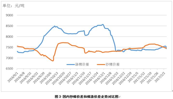 春節(jié)期間,國(guó)際棉花、棉紗價(jià)格漲幅較大;春節(jié)后國(guó)內(nèi)外棉花、棉紗價(jià)格齊漲,內(nèi)外價(jià)差明顯縮小。