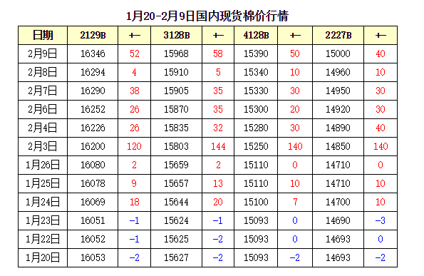 昨天(2月9日),國內(nèi)棉花現(xiàn)貨價(jià)格繼續(xù)走高。