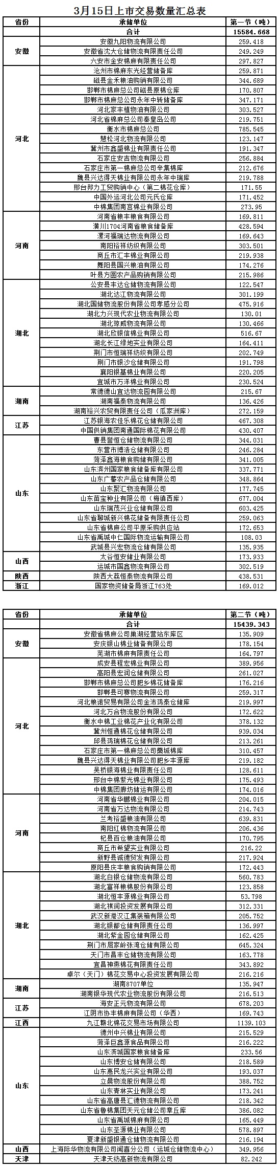 3月15日兩節(jié)共計(jì)輪出儲(chǔ)備棉31024.011噸。