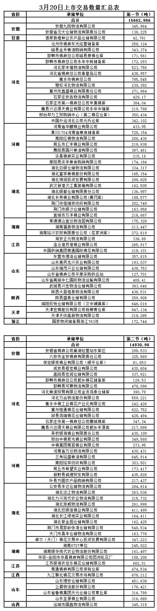 3月20日兩節(jié)共計(jì)輪出儲(chǔ)備棉30593.966噸。
