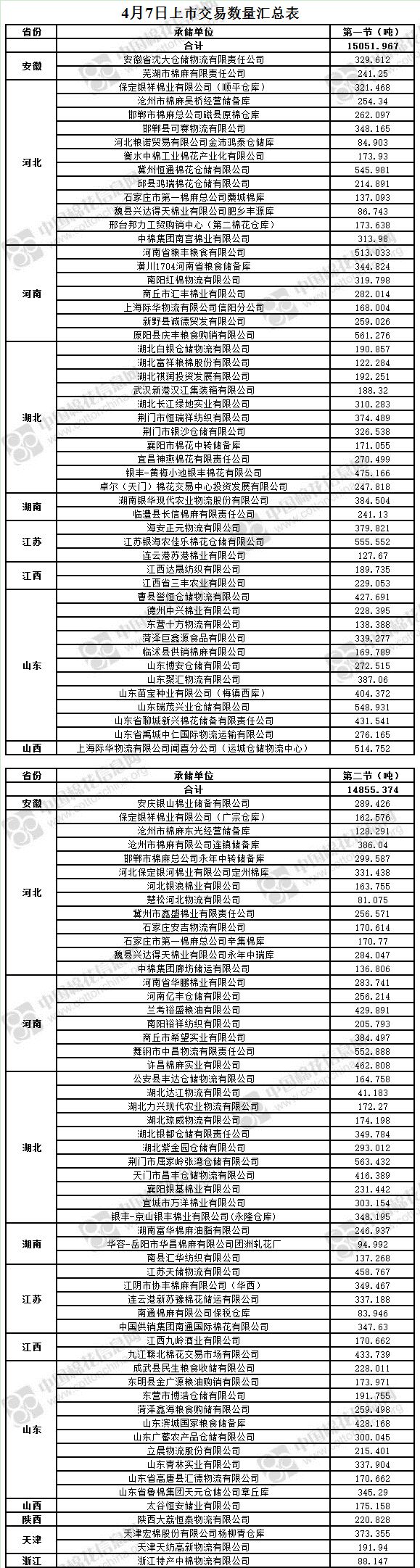 4月7日兩節(jié)共計(jì)輪出儲(chǔ)備棉29907.341噸。