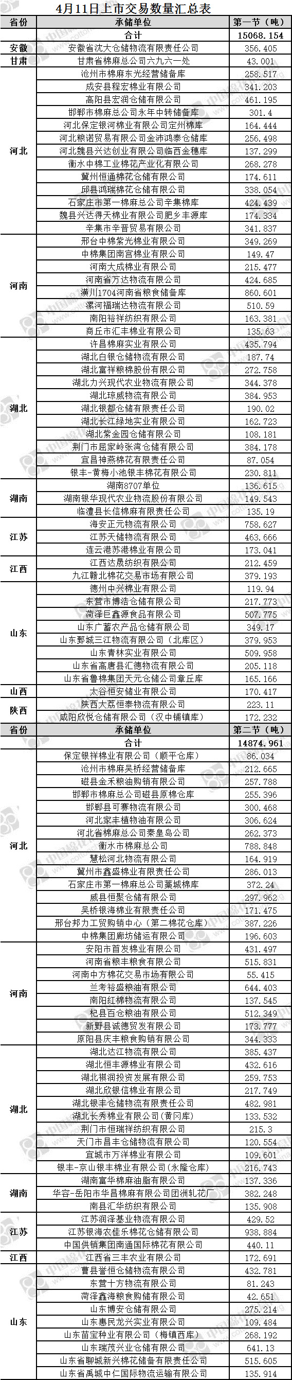 4月11日兩節(jié)共計輪出儲備棉29943.115噸。