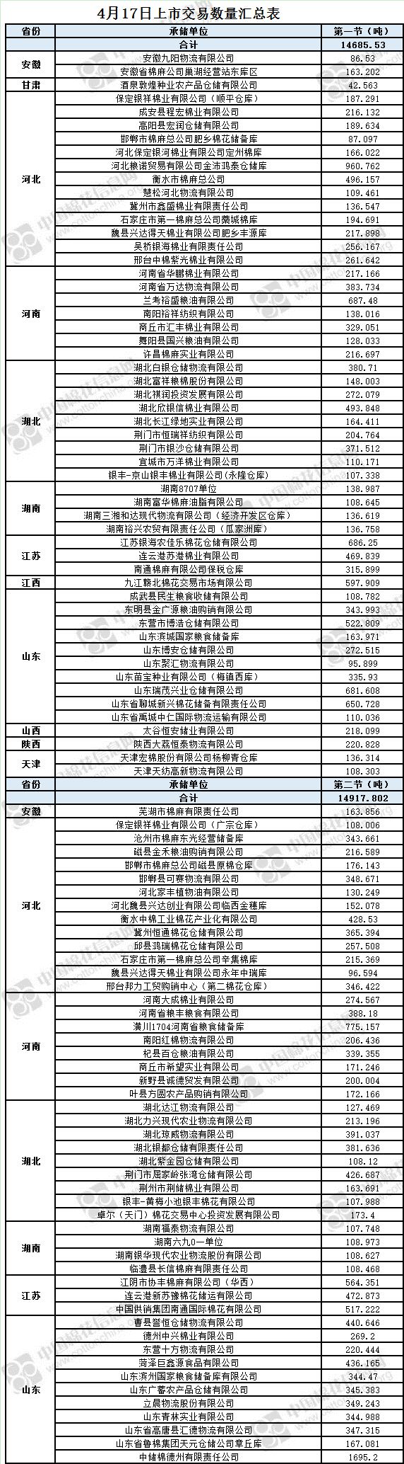 4月17日兩節(jié)共計(jì)輪出儲(chǔ)備棉29603.332噸。