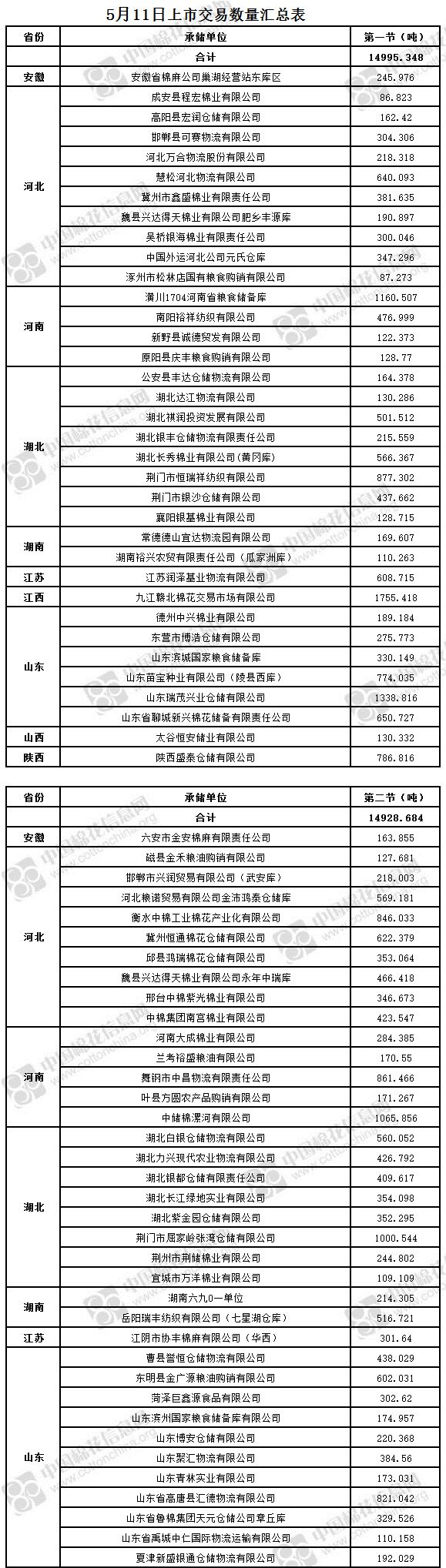 5月11日兩節(jié)共計(jì)輪出儲(chǔ)備棉29924.032噸。