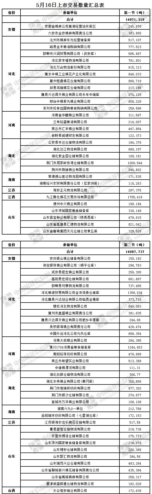 5月16日兩節(jié)共計(jì)輪出儲(chǔ)備棉29959.056噸。