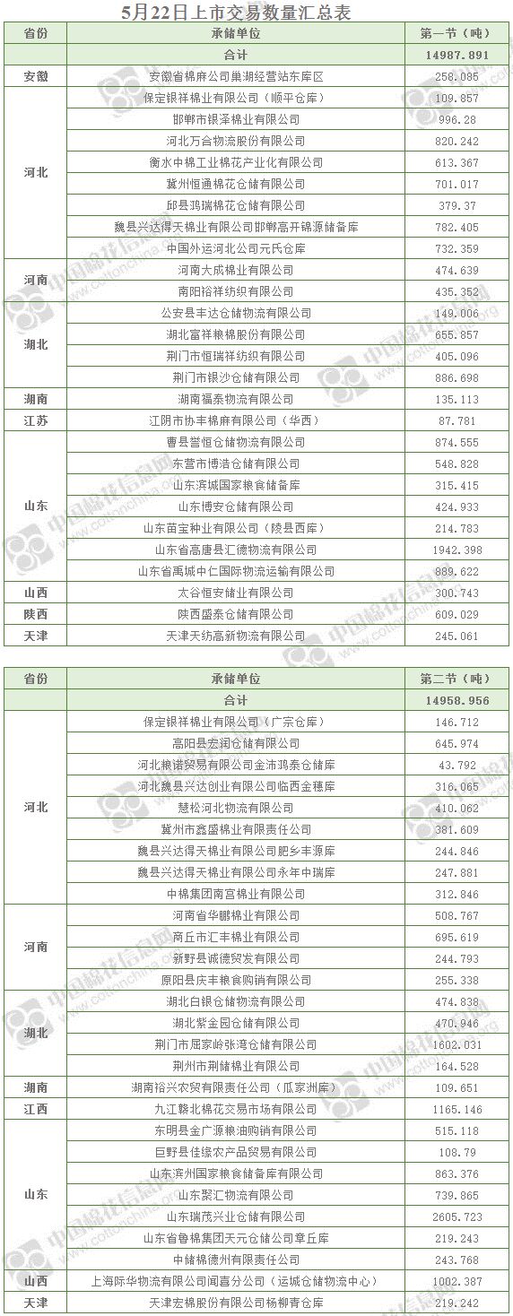 5月22日兩節(jié)共計輪出儲備棉29946.85噸。