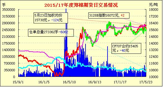 | CF707 | 15400 | 15445 | 15370 | 15400 | 15405 | -40 | 48 | -118 | 10844 | 1674 | 2 |