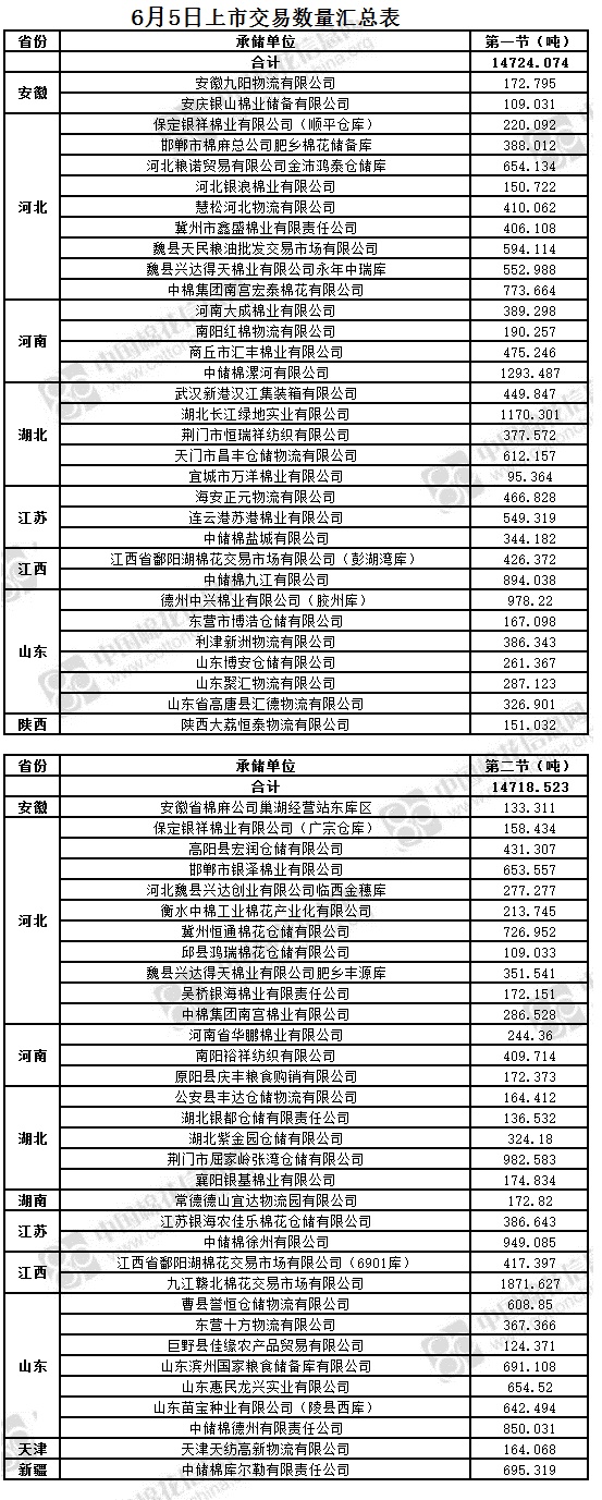 6月5日兩節(jié)共計(jì)輪出儲(chǔ)備棉29442.597噸。