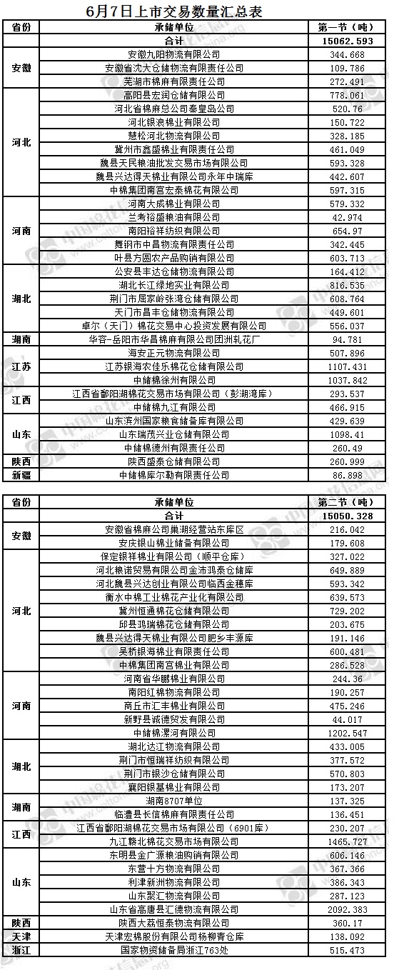 6月7日兩節(jié)共計輪出儲備棉30112.921噸。