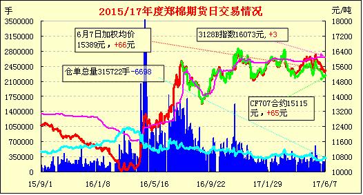 鄭棉期貨沖高回調(diào)減倉(cāng)收漲(06-07)