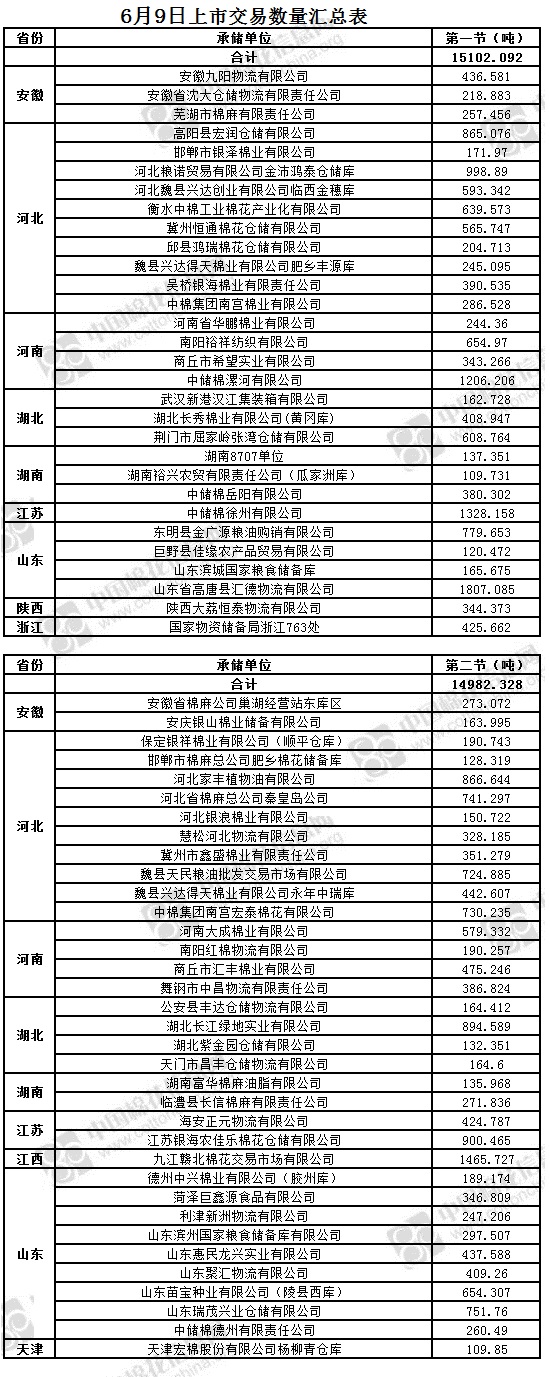 6月9日兩節(jié)共計(jì)輪出儲(chǔ)備棉30084.420噸。