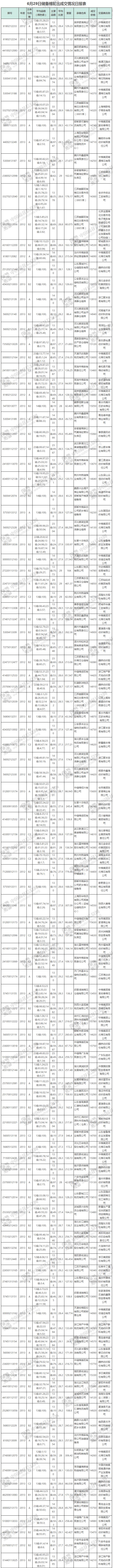 6月29日儲備棉輪出銷售資源29984.825噸,實際成交16937.809噸,成交率56.49%。當日最高成交價16340元/噸(2013年度新疆棉),最低成交價13290元/噸(2012年度地產棉)。成交平均價格14730元/噸(較前一日價格漲108元/噸);折3128價格:15848元/噸(較前一日價格漲53元/噸)。當日單捆最高加價1720元/噸(2012年度新疆棉),單捆最低加價20元/噸(2012年度地產棉9捆,2013年度地產棉14捆)。紡織企業(yè)家數占比:54.67%,非紡織企業(yè)家數占比:45.33%。