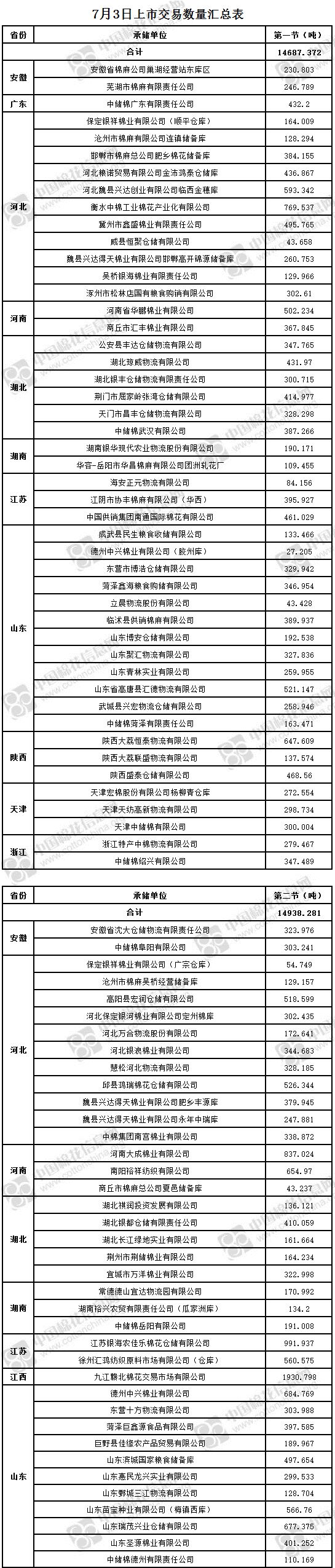 7月3日兩節(jié)共計(jì)輪出儲(chǔ)備棉29625.653噸。
