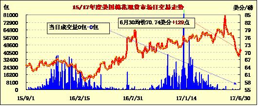 | 基于美國紐約期貨市場 | 標準級 | 中等級 | 漲跌 | 當日成交 | 增減量 | 季度成交 | ||