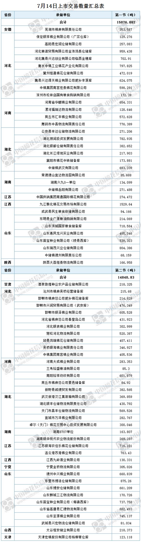 7月14日兩節(jié)共計輪出儲備棉29917.712噸。