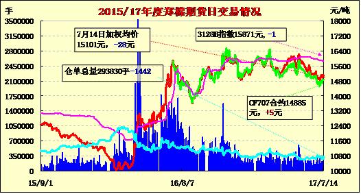 | CF707 | 14880 | 15010 | 14700 | 14700 | 14885 | 5 | 94 | 10 | 20778 | 0 | -1452 |