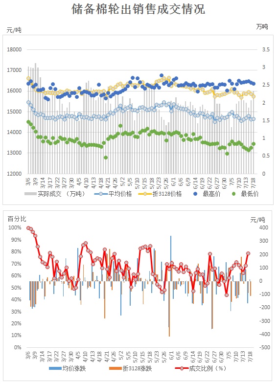 2017年3月6日至7月18日,儲備棉輪出累計(jì)成交192.6萬噸,成交率68.09%。