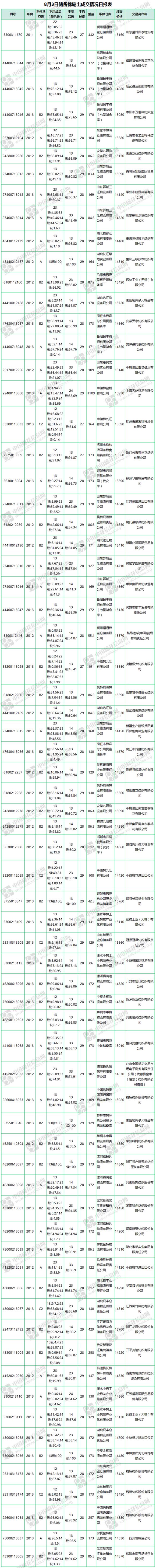 2017年3月6日至8月3日,儲(chǔ)備棉輪出累計(jì)成交213.49萬(wàn)噸,成交率67.04%。