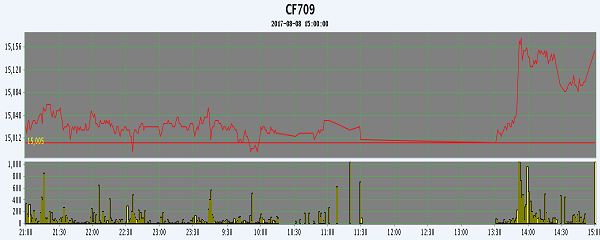主力CF709合約當(dāng)日交易走勢圖