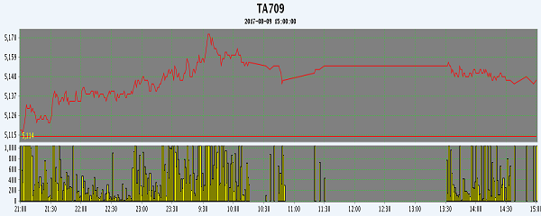 主力TA709合約當(dāng)日交易走勢