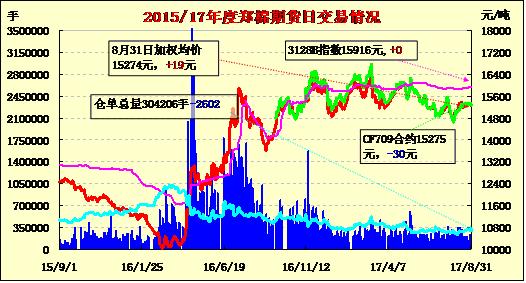 | CF709 | 15350 | 15400 | 15105 | 15270 | 15275 | -30 | 1886 | 646 | 18871024 | 6928 | -1616 |
