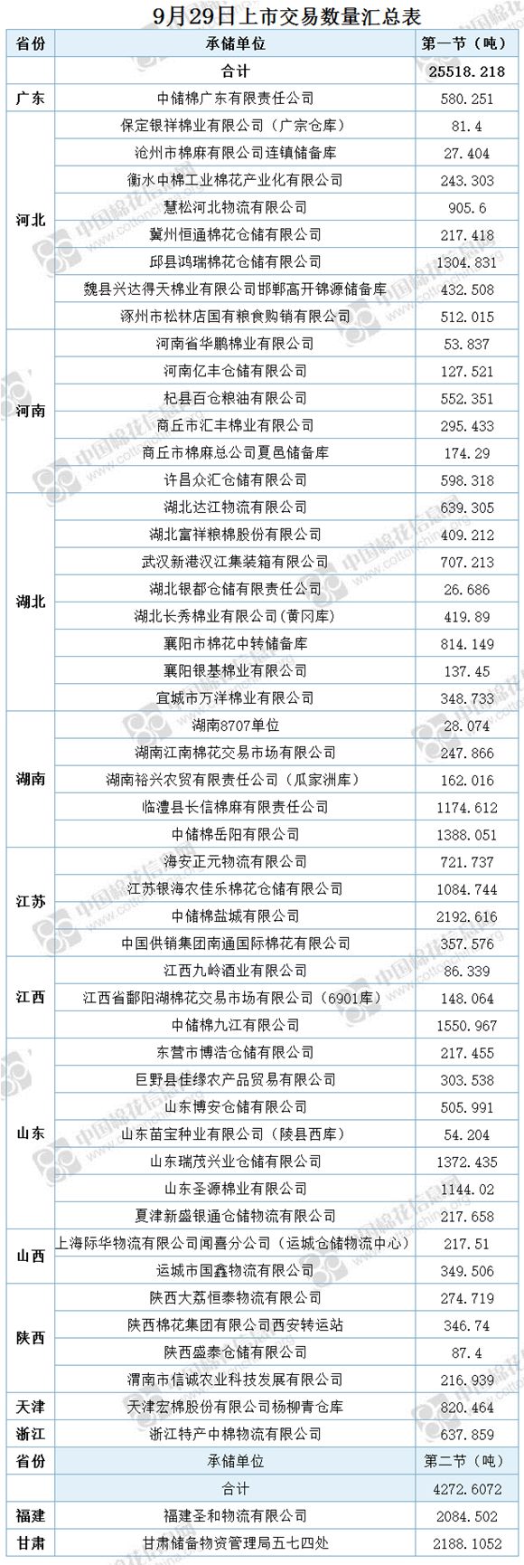 9月29日兩節(jié)共計輪出儲備棉29790.8252噸。