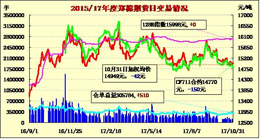 | CF805 | 14960 | 14975 | 14910 | 14955 | 14945 | -20 | 12196 | -2864 | 232964 | 77664 | -1782 |