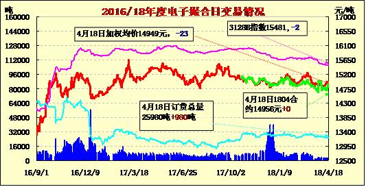 18日電子撮合交易成交量較前一交易日略有下降,合同均價多數(shù)收跌。其中MA1807成交量較大,為850噸;活躍交投的合同多集中于中期合同,MA1808訂貨量最大,累計訂貨量為7330噸。本年度全球供應寬松,中國拋儲成交率繼續(xù)下降顯示中國市場需求疲軟,中國以外地區(qū)期末庫存創(chuàng)歷史新高,這將抑制紐約期棉的反彈,雖然ICE期棉在ON-CALL訂單的支撐下維持強勢,但上方空間有限,對紐約期棉的強勢不可樂觀,繼續(xù)關注84美分/磅對期價的壓制作用。
