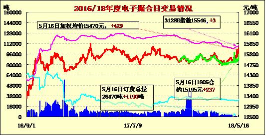 16日電子撮合交易成交量較前一交易日增加,合同均價(jià)全部收漲。其中MA1808成交量較大,為320噸;活躍交投的合同多集中于中遠(yuǎn)期合同,MA1808訂貨量最大,累計(jì)訂貨量為7410噸。截至5月13日當(dāng)周,美國(guó)棉花種植率為36%,較之前一周明顯加快,較正常水平高出5個(gè)百分點(diǎn),另外上周美國(guó)農(nóng)業(yè)部數(shù)據(jù)顯示新年度美棉出口預(yù)估數(shù)據(jù)不佳,致使結(jié)轉(zhuǎn)庫(kù)存上升。