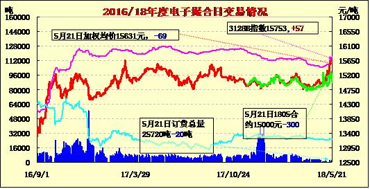 21日電子撮合交易成交量較前一交易日增加,合同均價多數(shù)收漲。其中MA1805成交量較大,為70噸;活躍交投的合同多集中于中遠期合同,MA1808訂貨量最大,累計訂貨量為7280噸。上周北方農(nóng)區(qū)熱量充足,大部地區(qū)土壤墑情適宜,但降水分布不均,華北南部、黃淮部分地區(qū)出現(xiàn)強降水、強對流天氣,造成局地小麥倒伏。南方大部地區(qū)水熱條件較好,利于春播作物生長發(fā)育;但江南和華南部分地區(qū)出現(xiàn)分散性強降水,局地農(nóng)田遭受漬澇害。