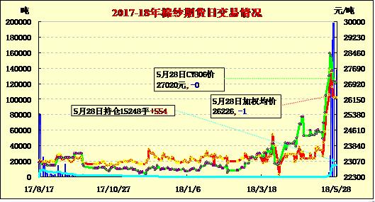 5月28日PTA期貨低開(kāi)下滑,全線收跌。隔夜PTA期貨大幅低開(kāi),今日繼續(xù)低位震蕩,日均呈大陰線。當(dāng)日總成交99.49萬(wàn)手,減4.79萬(wàn)手,持倉(cāng)153.82萬(wàn)手,減倉(cāng)14.75萬(wàn)手,成交均價(jià)5708元/噸,跌101元。其中TA807合約5710元/噸,跌122元;TA809合約成5710元/噸,跌00元。25日紐約原油期貨67.88美元/桶,跌2.83美元,三連跌;滬期油價(jià)480.6元/噸,跌2.4元。